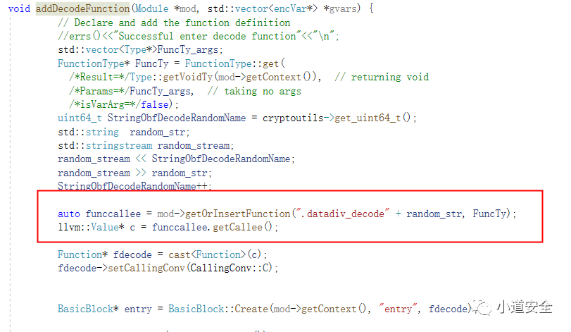 防止破解者能够快速识别是基于ollvm实现的字符串加密,可以重点修改下这个函数的实现和“.datadiv_decode+随机数”的特征。