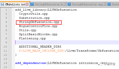 CMakeLists.txt配置要编译的StringObfuscation.cpp文件