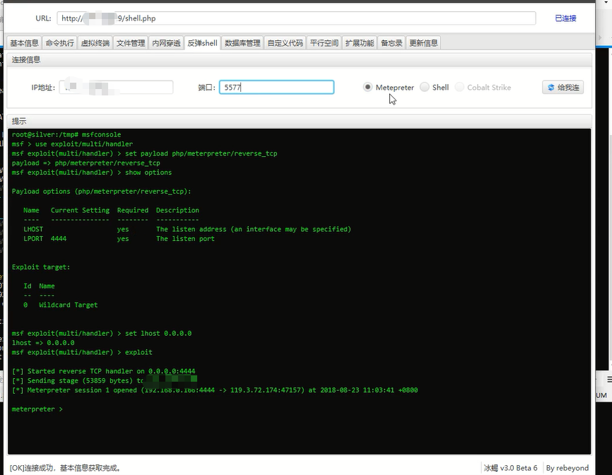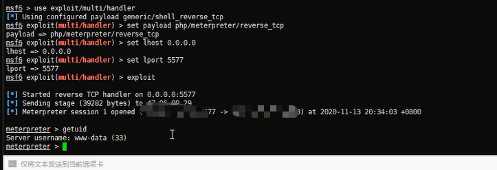 在进行linux提权时,推荐使用冰蝎,因为冰蝎里面有很多集成化功能,可以反弹shell到msf中。
