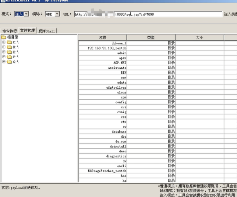 拥有一个Oracle注入点,可以通过注入点执行系统命令,此种模式没有实现回显,需要自己验证。