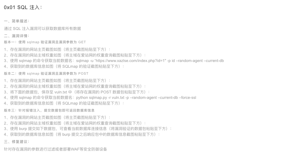 5、当你提交漏洞,需要填写常见漏洞的基本信息和复现步骤时,直接复制参考内容即可