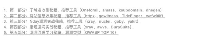 该工具还提供了 SRC 漏洞挖掘的全流程秘籍,点击相关秘籍即可跳转至详情页,提供了工具和脚本的全流程操作指南:
