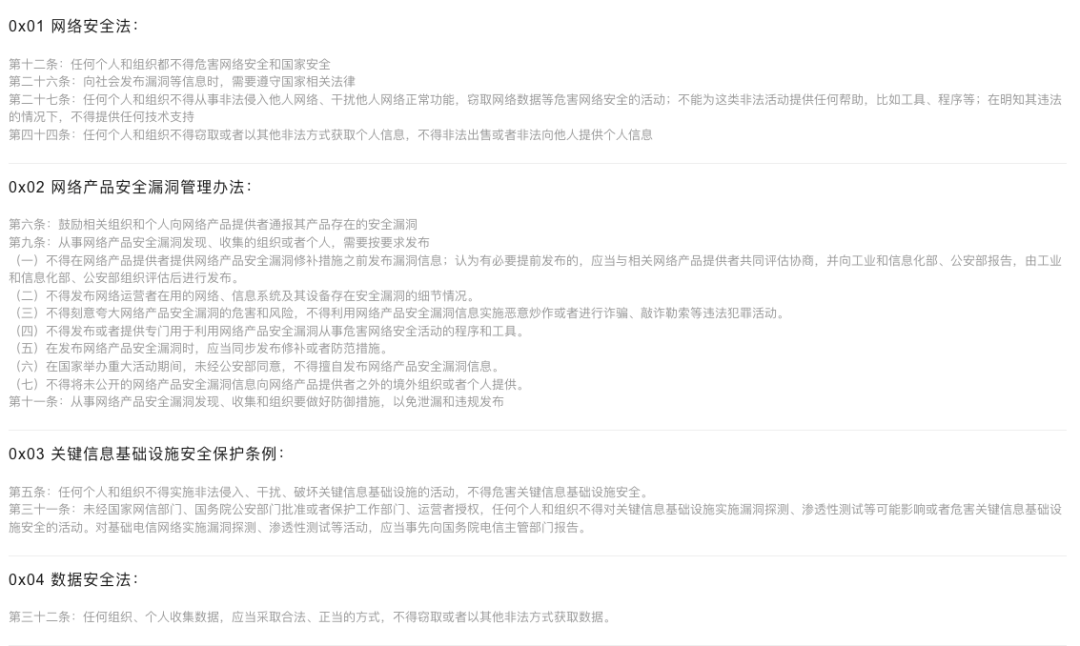 为了方便大家,将目前颁布的法律法规中有关白帽子的信息进行了整理,大家即可查看: