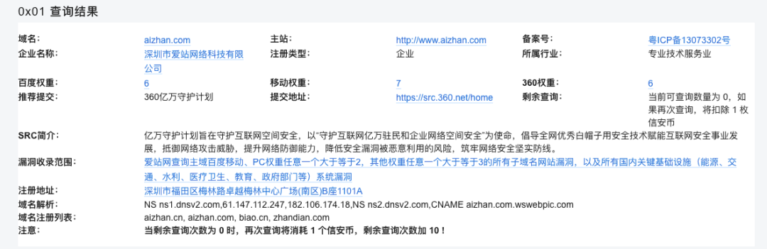 3、如果域名查询时,没有结果出现,则不消耗查询次数