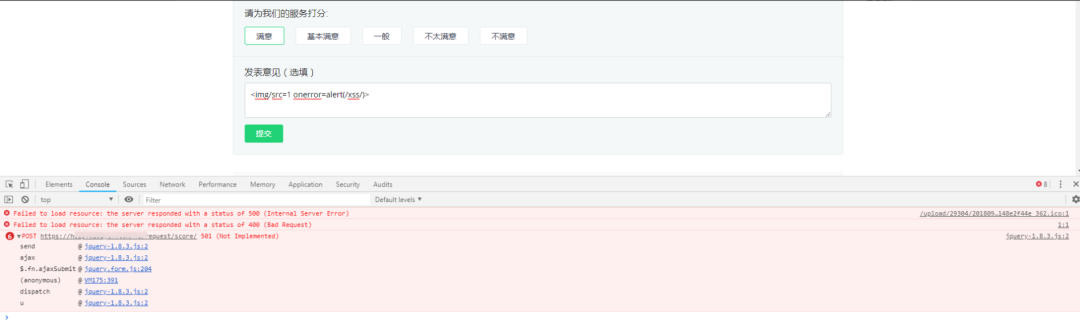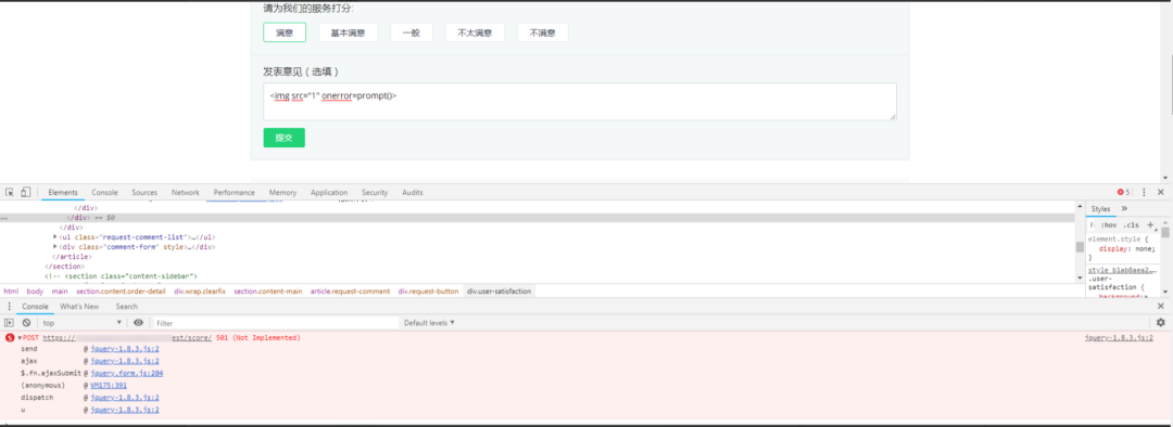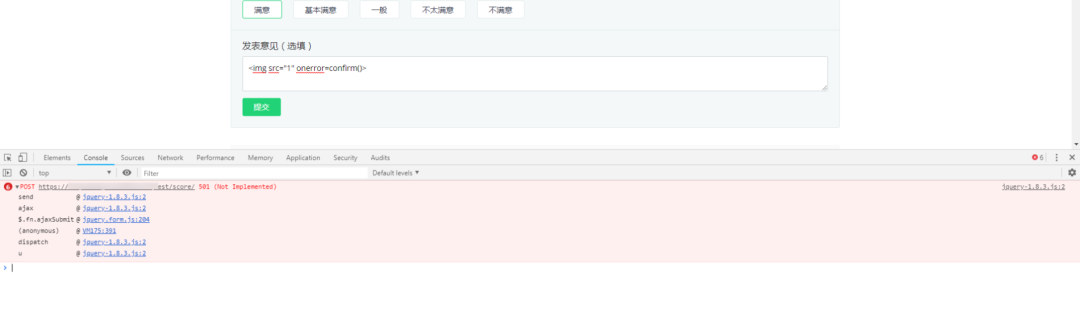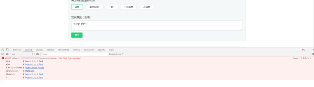 继续深入测试的时候却发现了问题,我们的payload应该是触发了xss防御机制无法提交成功,所以服务器放回501错误。
