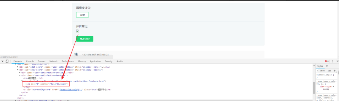 插入一个<img/src=1>以后可以看到标签成功解析: