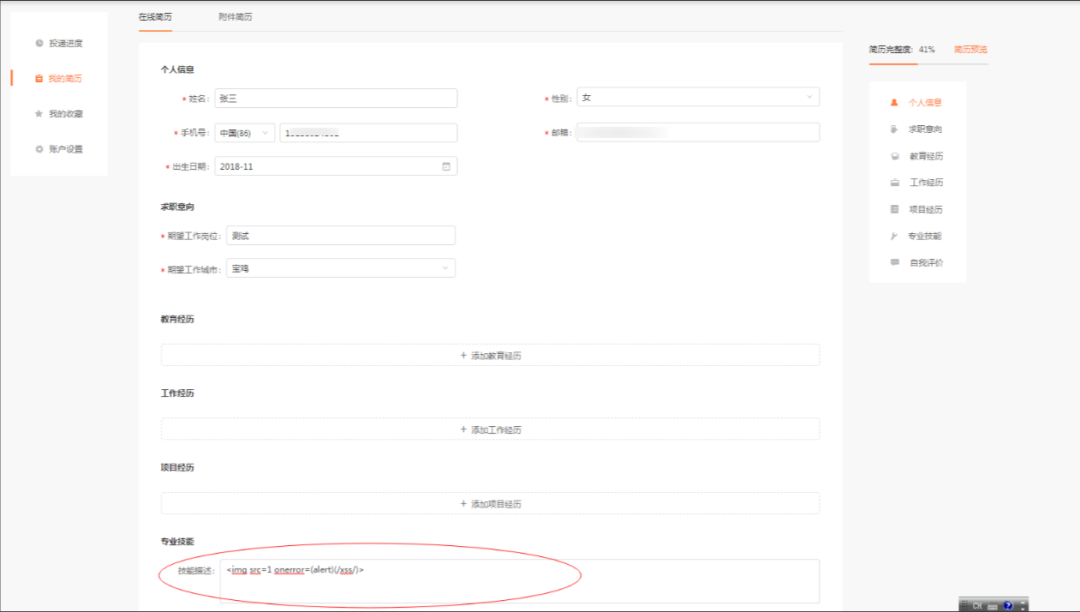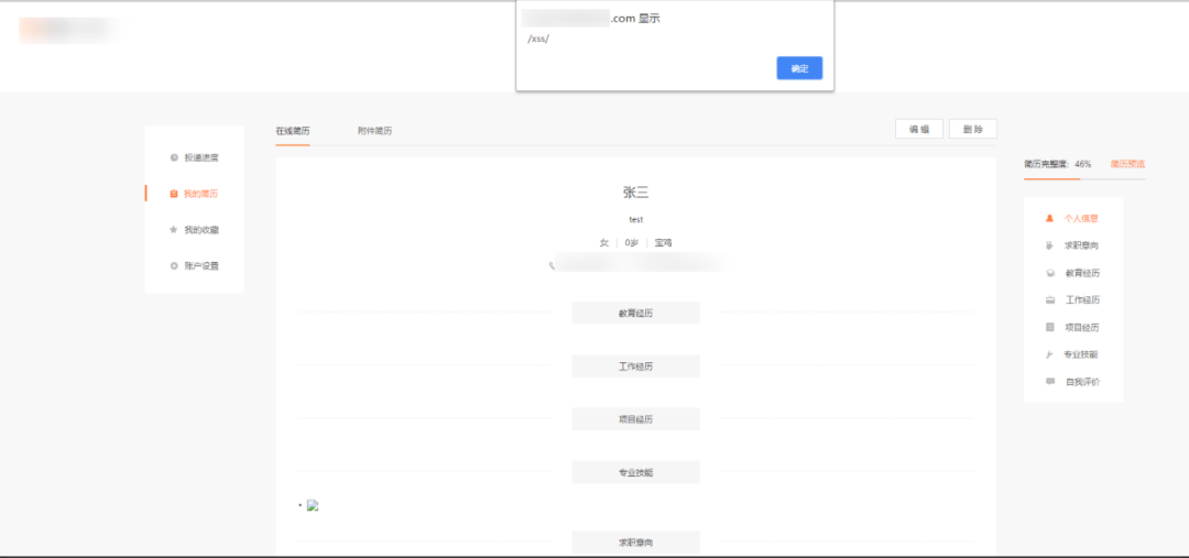 在对厂商进一步测试的时候,发现某站点编辑简历时的存储型XSS,和上面的过滤规则一毛一样,所以直接: