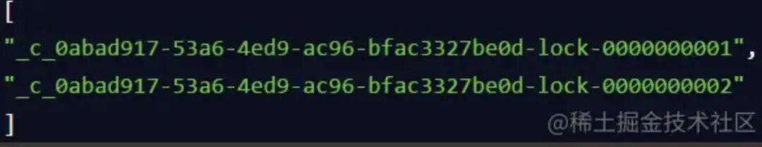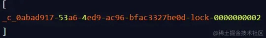 此时,就会通知客户端 B 重新尝试去获取锁,也就是获取"my_lock"节点下的子节点集合,此时为: