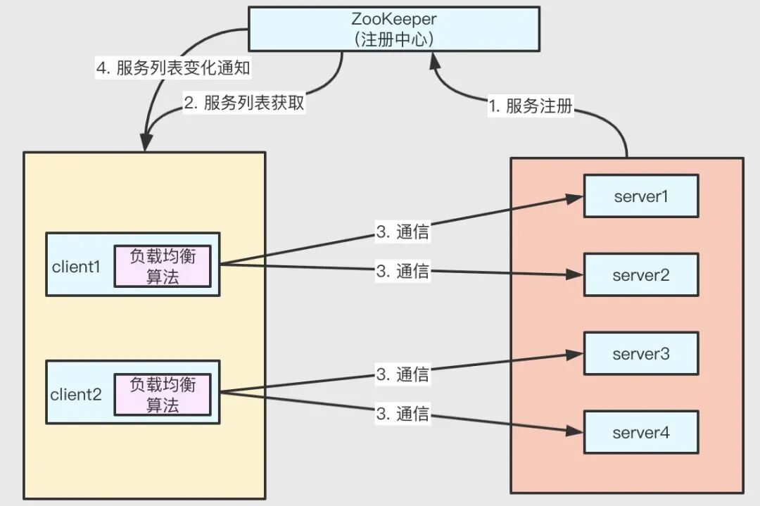 利用 ZK 的临时节点、watcher 机制等特性可实现负载均衡,具体思路如下: