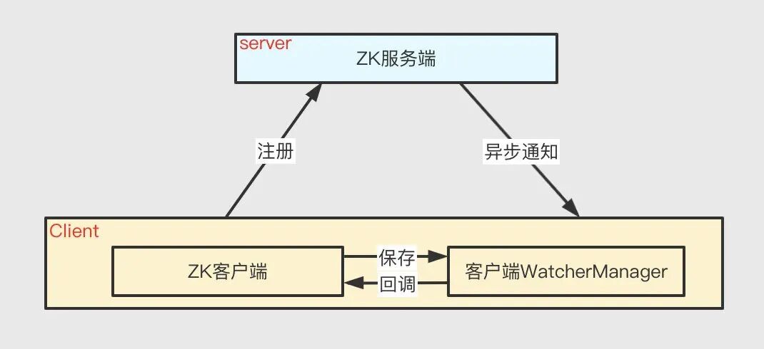 Watcher 监听机制是 ZK 非常重要的一个特性。ZK 允许 Client 端在指定节点上注册 Watcher,监听节点数据变更、节点删除、子节点状态变更等事件,当特定事件发生时,ZK 服务端会异步通知注册了相应 Watcher 的客户端,通过该机制,我们可以利用 ZK 实现数据的发布和订阅等功能。