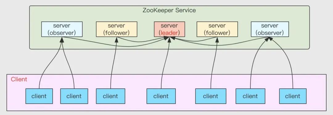 ZK 集群服务器有三种角色:Leader、Follower 和 Observer