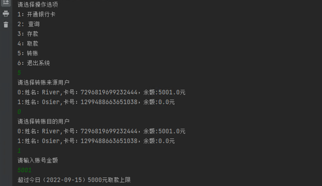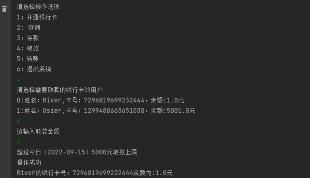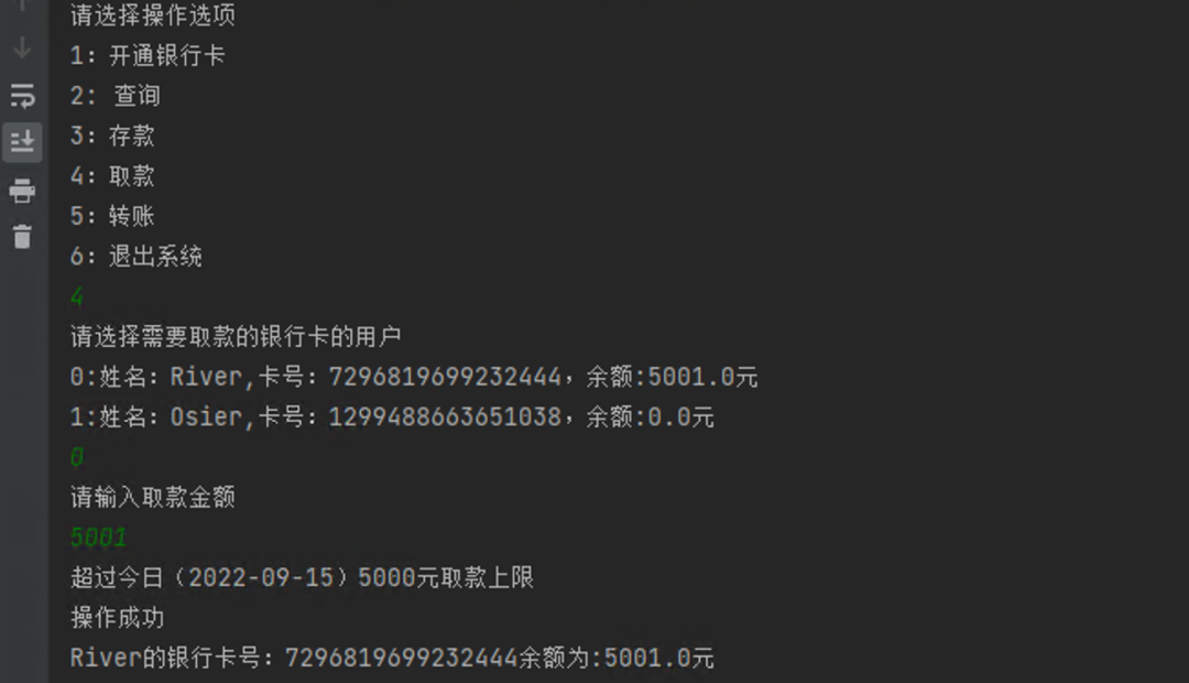 System.out.println("超过今日(" + this.getRecordDate() + ")5000元取款上限");