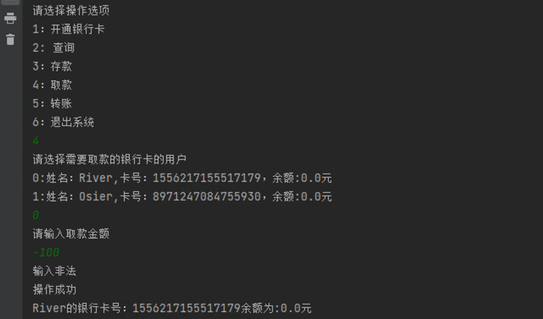 System.out.println("开卡身份证号码:"+bankCustomers[0].getID());