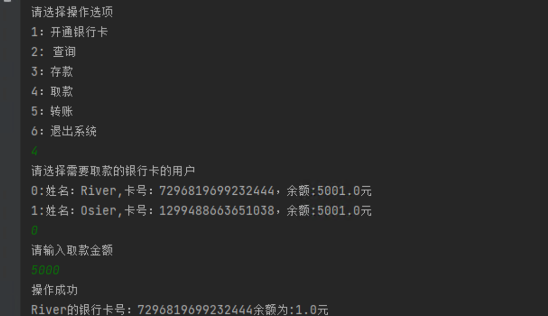 System.out.println("您已成功申请银行卡,详细信息如下:");