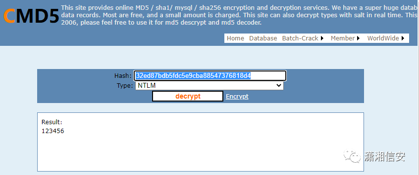 注:本地测试机器Windows10,不能直接抓取明文,所以才抓取的哈希,再通过cmd5破解得到明文密码。