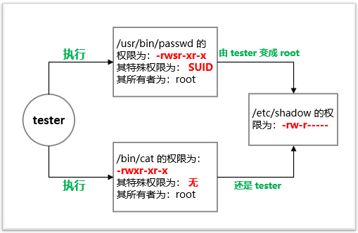 setuid是set uid ID upon execution的缩写,我们一般会再次把它们缩写为suid,它们是控制文件访问的权限标志(flag),它允许用户以可执行文件的所有者的权限运行可执行文件,当所有者为root时,其他用户则可以使用root权限运行可执行文件,这就带来了安全风险,用户可以通过带有suid权限的命令进行提权,最终获得root权限。