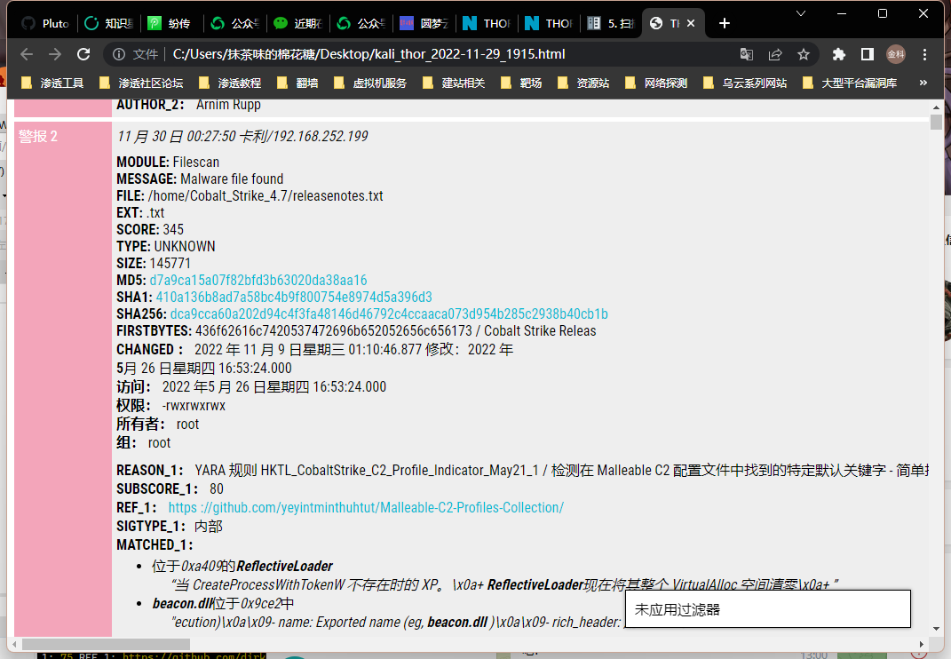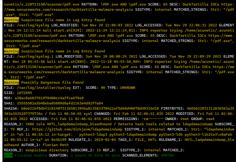 THOR 专注于 Antivirus 遗漏的一切。凭借其包含数千条 YARA 和 Sigma 规则、IOC、rootkit 和异常检查的庞大签名集,THOR 涵盖了所有类型的威胁。THOR 不仅检测攻击者使用的后门和工具,还检测输出、临时文件、系统配置更改和其他恶意活动痕迹。