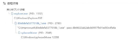 LockBit3.0在执行的时候,需要检查执行参数是否正确,如本次分析的示例样本,正确执行参数为“-pass db66023ab2abcb9957fb01ed50cdfa6a”。如下图所示微步云沙箱进程详情:![]()