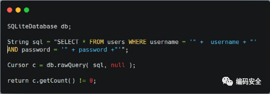 Android应用程序中一般情况下,使用SQLite数据库来控制和管理本地数据存储。假设Android应用程序通过将用户凭据存储在本地数据库中来处理本地用户身份验证。当登录SQLite数据库后,应用程序查询数据库以搜索用户输入的用户名和密码的记录。
