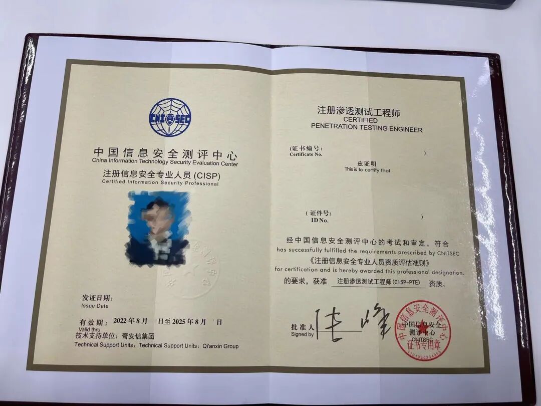 渗透测试实战工程师集训营课程服务中包括19800元的注册信息安全(专业)人员-渗透测试工程师认证(CISP-PTE)的培训及考试费用。CISP-PTE证书在行业内认可度极高,多数企业需要此证书彰显公司实力或者投标使用,有些公司会对持有证书的员工提高薪资或发放补贴。
