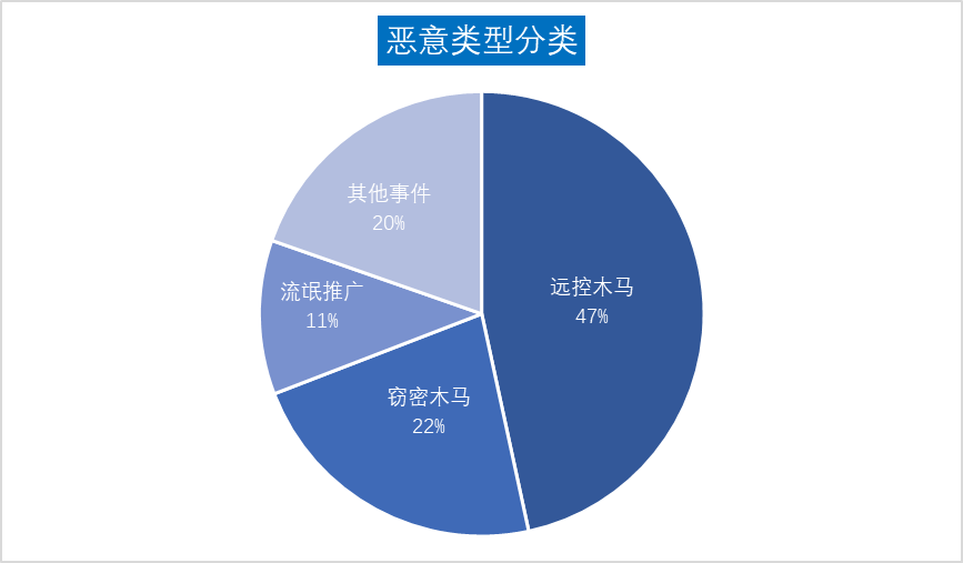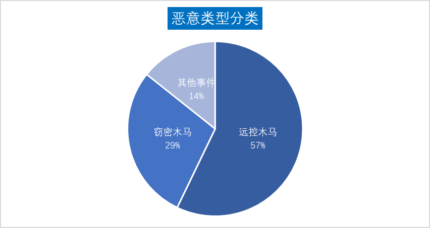 据《2022医疗卫生行业网络安全分析报告》显示:2021年医疗卫生行业风险事件以漏洞利用和恶意程序为主,在一次风险事件中,攻击者会使用包括漏洞利用和恶意程序等多种手段对医疗卫生行业的网络系统进行攻击,如果不能及时进行监测和处置,会造成不可估量的业务损失,甚至会危及患者的生命。而恶意程序类型的风险事件中,远控木马、挖矿木马的占比居首位。
