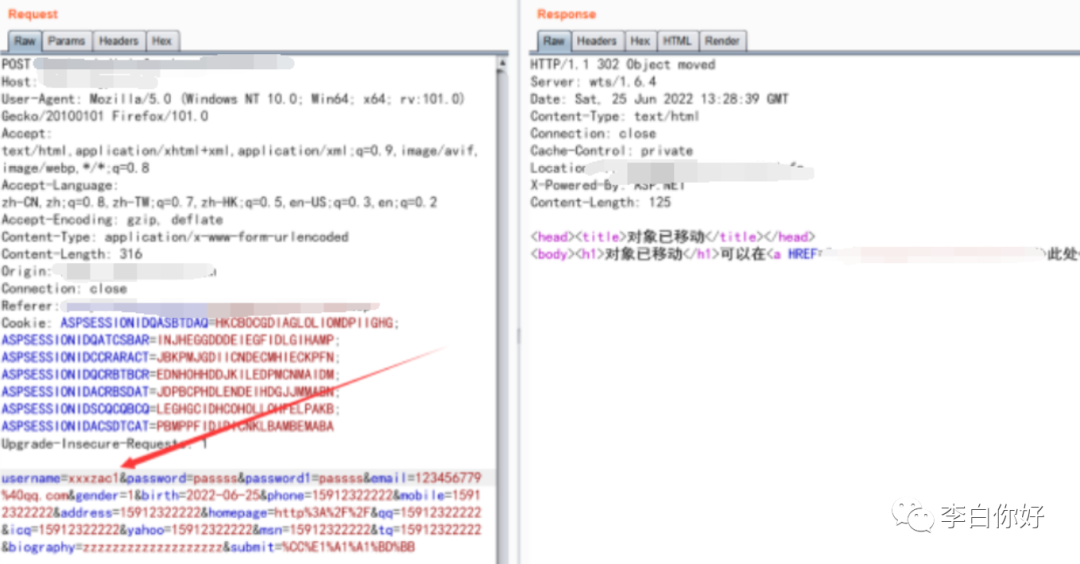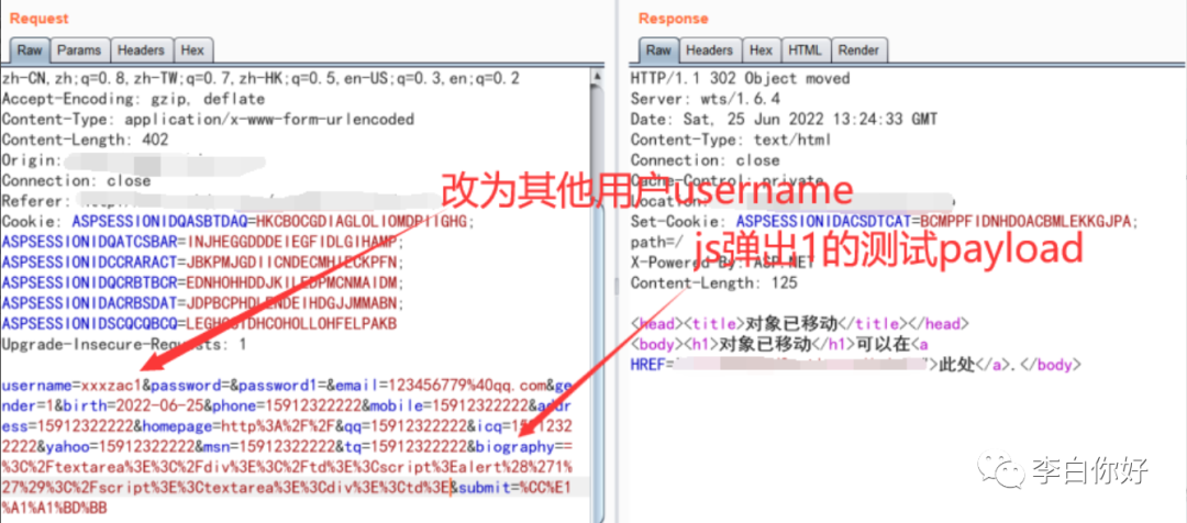 果断抓包,这里的逻辑是用自己的用户名找回密码,在最后修改密码的时候抓包,改成其他用户名