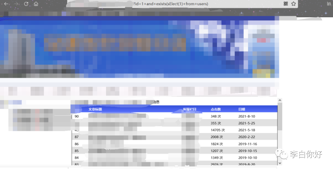 最终的payload:www.xxx.com/xxx/?id=1+and+exists(查询数据的语句)