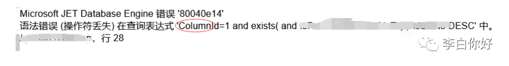 虽然access数据库不支持报错注入,但是后面我们会利用是否报错来进行一个盲注