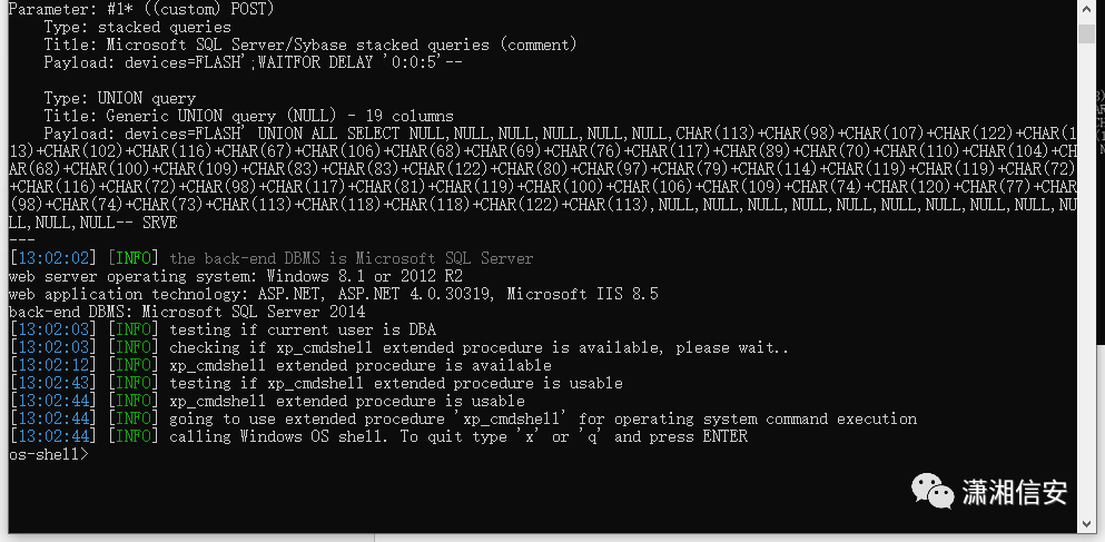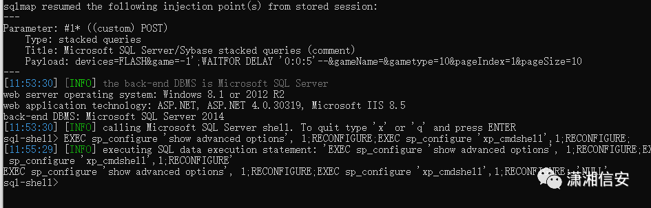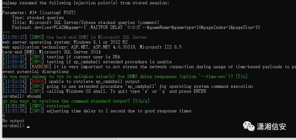 Xp_cmdshell哪里=0呢?看看语句是不是有毛病,看返回时间是没毛病的,在这里就纳闷了….
