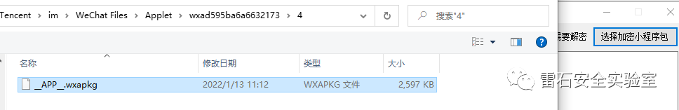 然后在自己微信文件保存路径下找到applet下找到该小程序包,可以通过时间或者小程序的appid快速定位到目标包