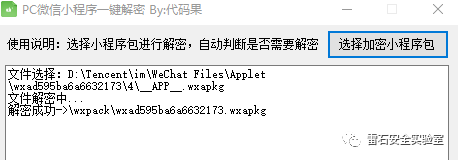 打开解密工具,在工具目录建立wxpack文件夹(解密后的小程序包会放在这个地方),运行工具解密需要操作的小程序包即可