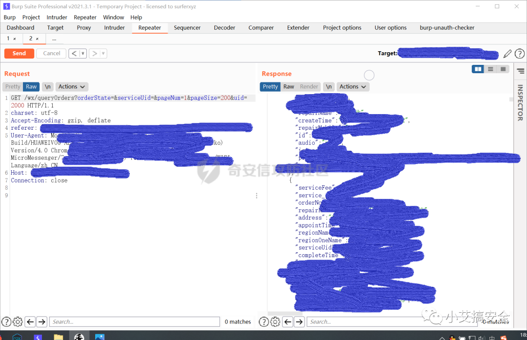 GET /wx/queryOrders?orderState=&serviceUid=&repairUid=6864&pageNum=1&pageSize=20&uid=6864&token=9938C366-XXXX-XXXX-XXXX-9C7709D8C9E8