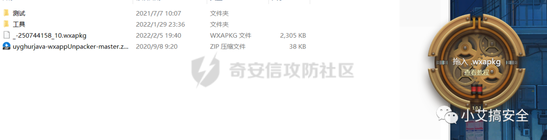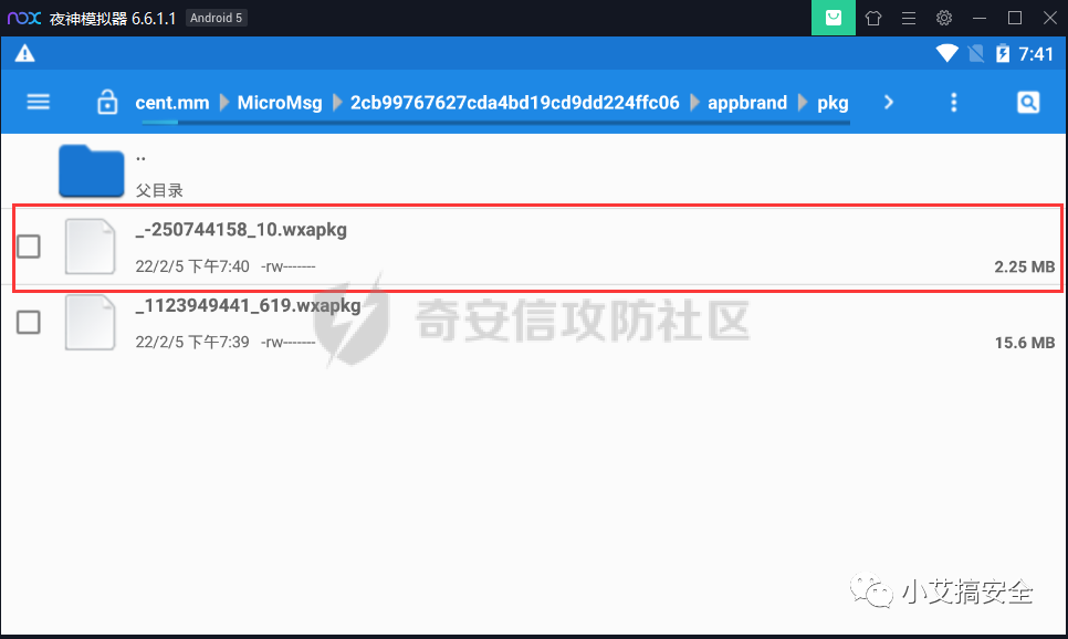 在该文件夹下的appbrand/pkg目录下找到.wxapkg后缀结尾的文件,其中只有几MB大小的为刚刚打开的小程序的文件