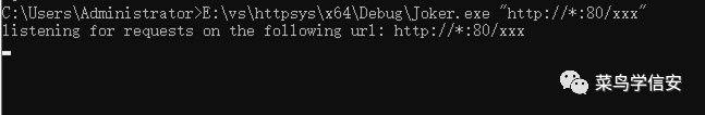 利用 Http.sys 驱动对urlacl进行操作,由于Http.sys是IIS服务器的基础,其优先级高于IIS,不会造成端口bind冲突,达到端口服用效果,由于与受害机对外服务端口相同,可做到极高的隐蔽性。由于其生效后效果很类似于LOL的小丑,故起名为Joker。