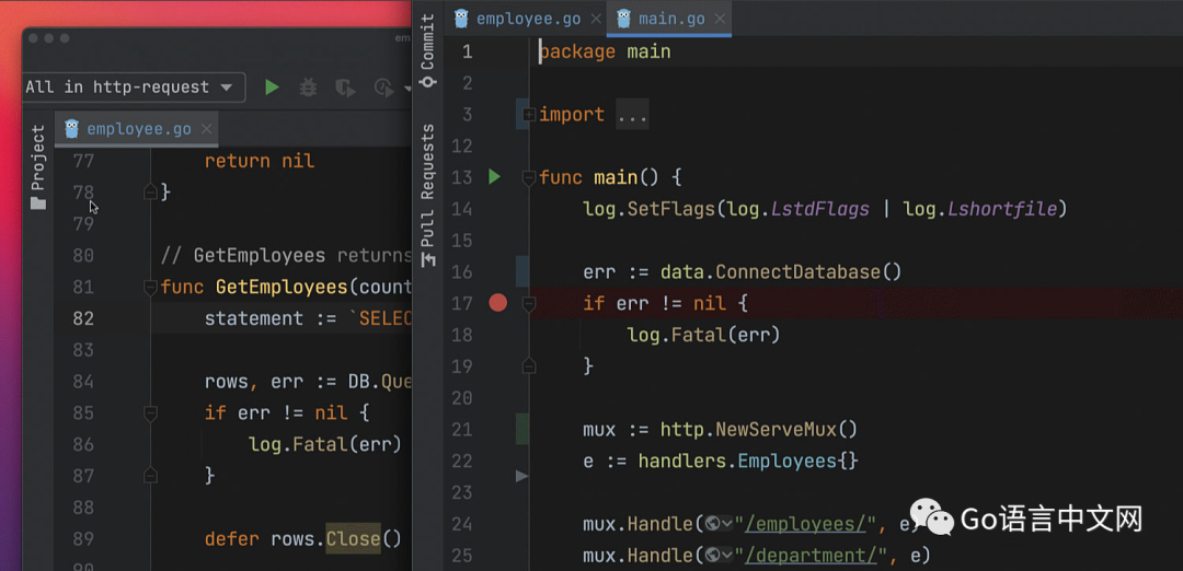 为了让你可以更轻松地安排工作空间并在多个显示器上与 GoLand 交互,我们实现了将工具窗口拖出主窗口并将其停靠到浮动编辑器选项卡的选项。