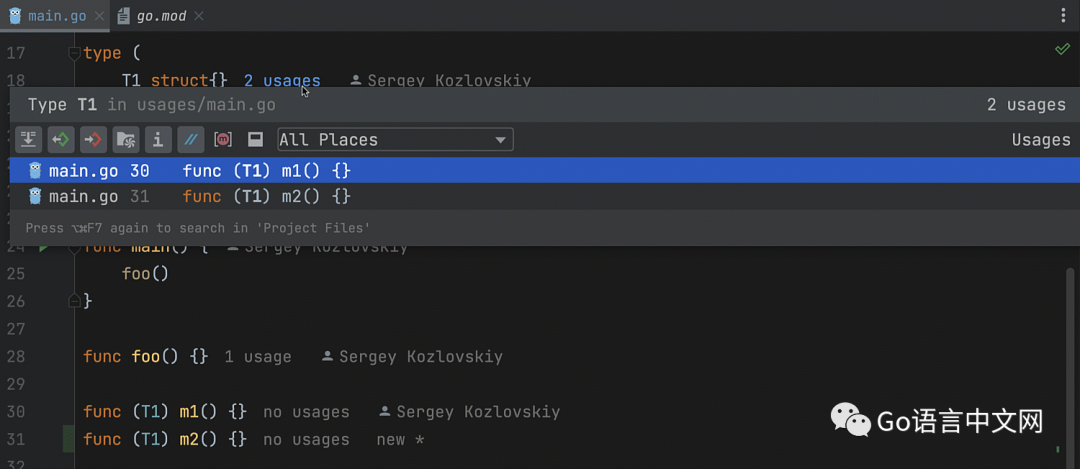 我们还引入了在所有函数和类型附近显示的用法,显示函数或类型在当前项目中被引用的次数。