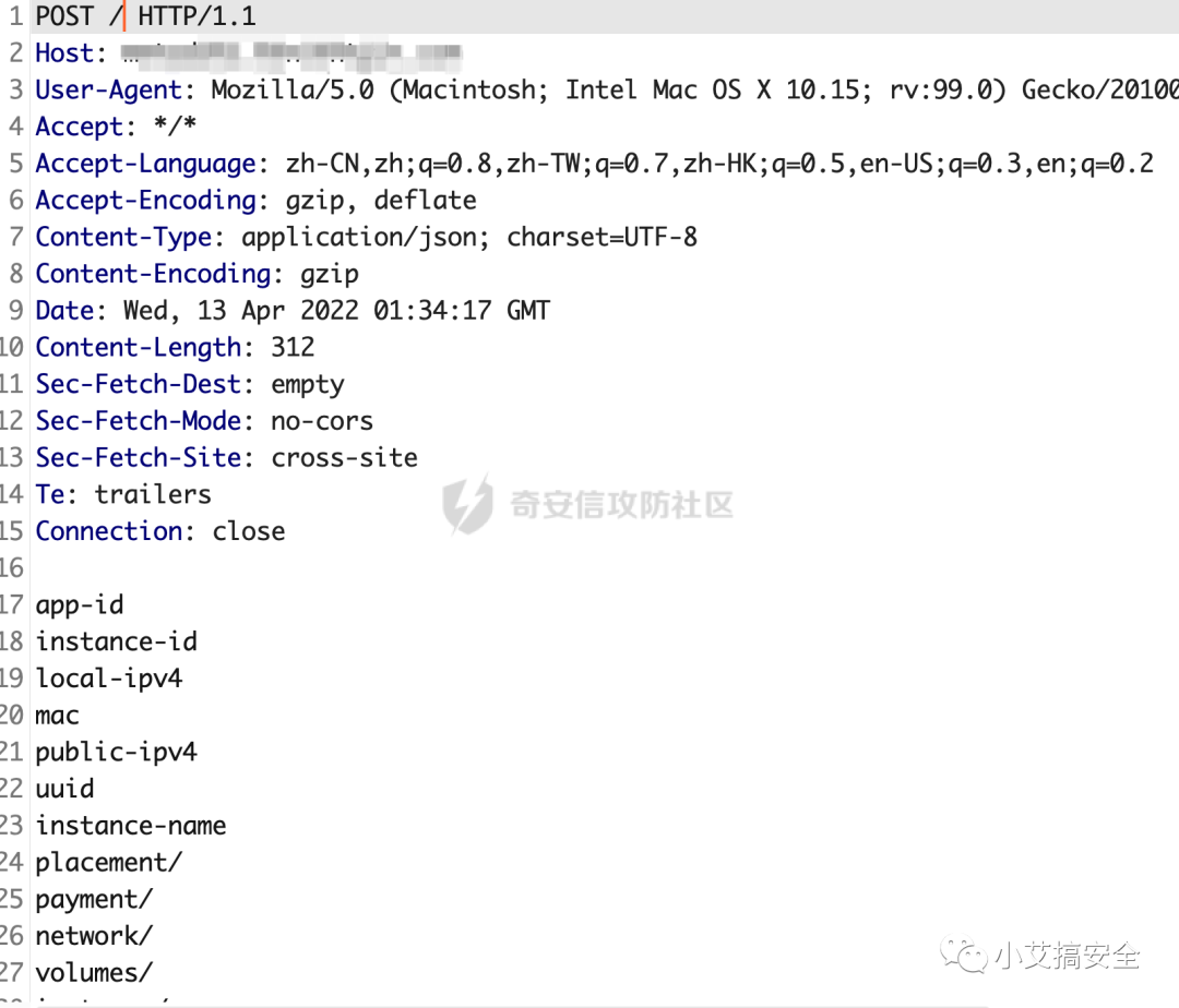 我们可以利用如下payload去获取metadata service中的数据信息。