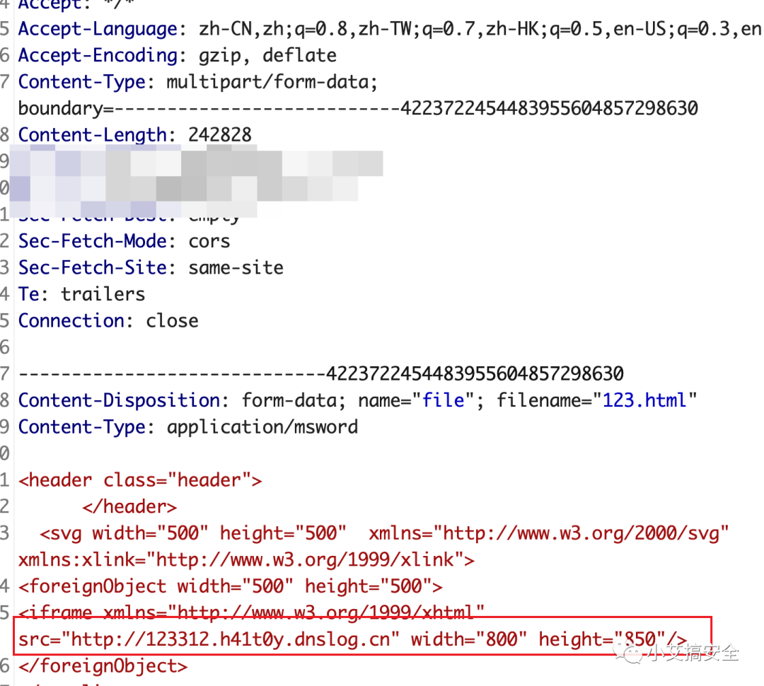 1、有些网站存在功能,能够将一些将数据分析的表格导出为pdf或者图片,如下POST数据包,html文件就是我们要导出的内容,而这里存在ssrf漏洞