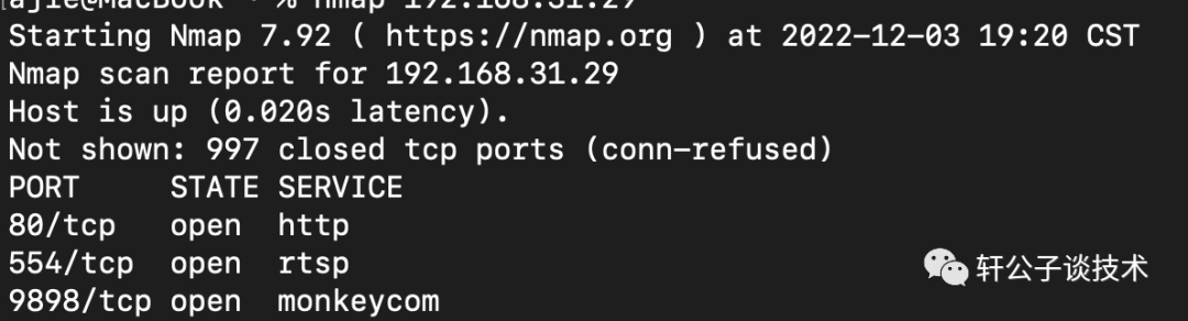 发现 554 端口对应的是rtsp协议,可能存在弱口令,未授权等