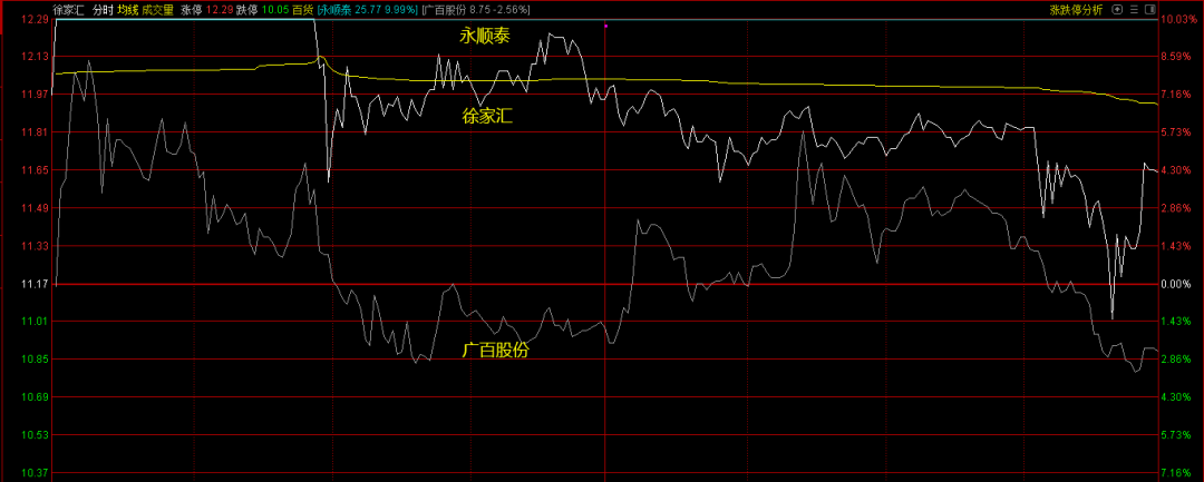 永顺泰>徐家汇>广百股份。