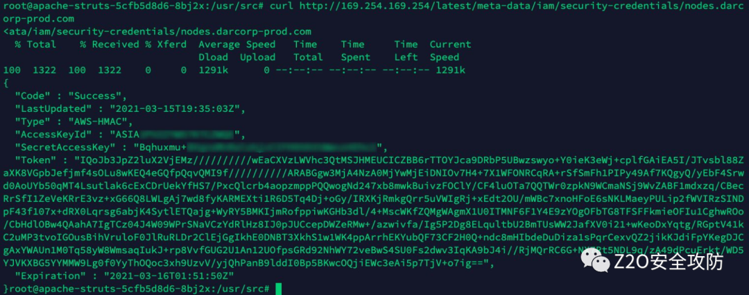 观察IAM凭证,对手找到了与运行pod的Kubernetes节点相关的AWS IAM角色凭证。