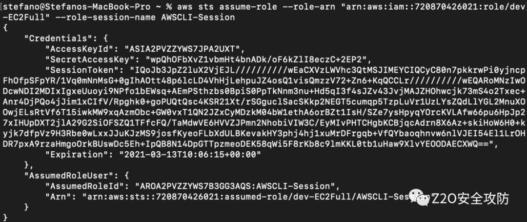 攻击者现在可以在自己的环境中导入凭证,并通过cli直接访问云账户。