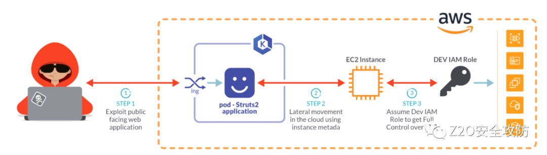 通过冒充这个角色,攻击者能够像一个dev用户一样,对EC2实例有完全的访问权,并有能力为自己的目的创建新的实例。