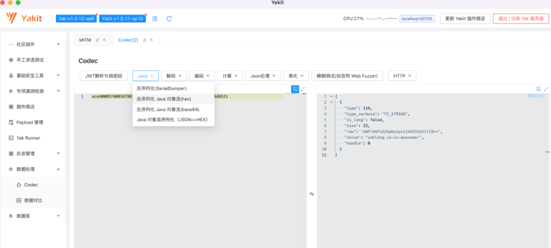 该部分的使用详情请参见文章”新年献礼:使用 Yakit 打破 Java 序列化协议语言隔离“