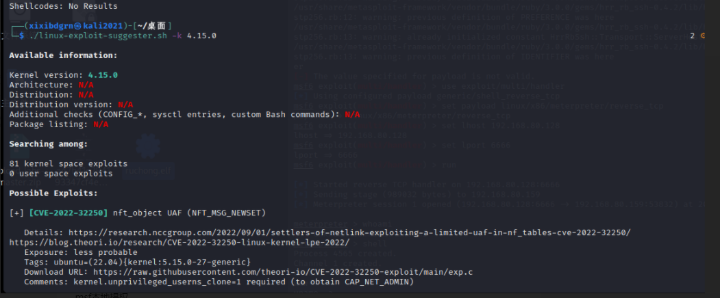 该脚本自行上github搜索./linux-exploit-suggester.sh -k 4.15.0