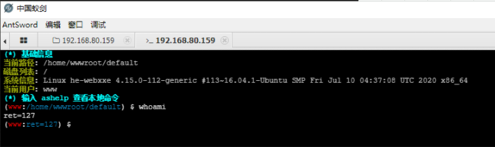 那么 这个时候蚁剑的插件就派上用场了 可以通过绕过来执行少数的一些命令 从而给我们提供更多的操作空间