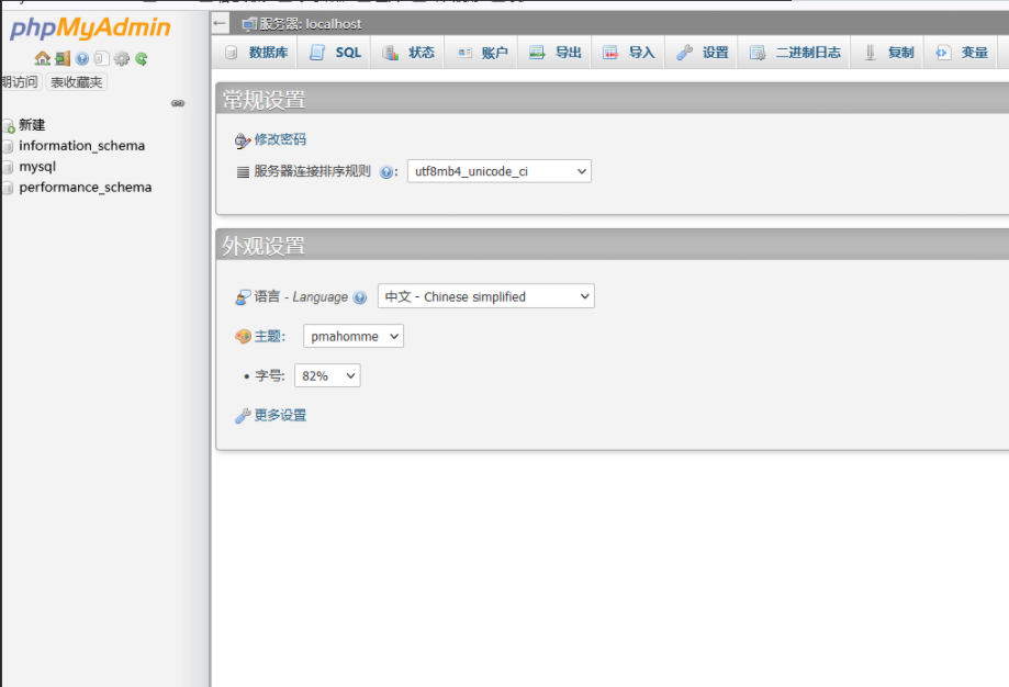 成功进入phpmyadmin管理页面 ps:这里提一下 当成功进入管理页面 需要去做什么呢?