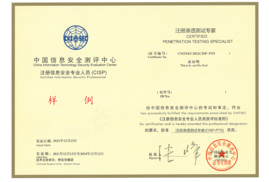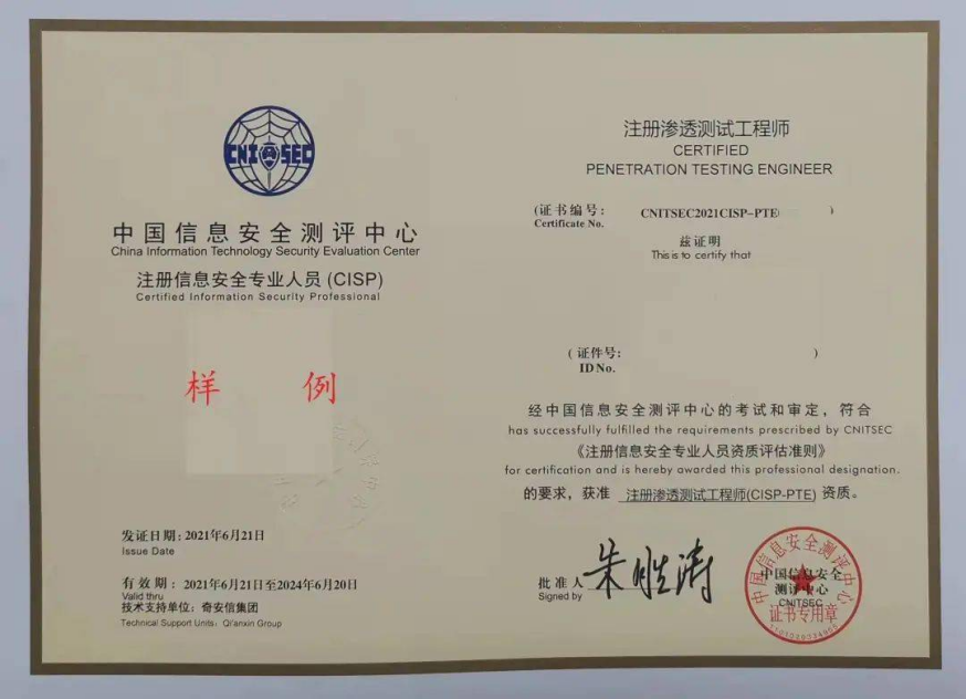2017年,中国信息安全测评中心与奇安信集团联合成立CISP渗透测试领域考试中心,并于2017年底正式推出了国内首个攻防领域资质认证——CISP-PTE(注册信息安全专业人员-渗透测试工程师),逐渐受到广大网络安全渗透测试从业者、特别是高级网络安全渗透测试人才的关注与欢迎,该认证自此在业界广受认可。