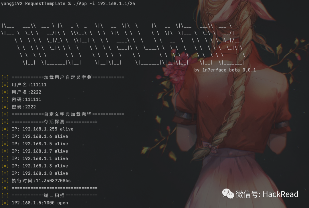App 不加参数对192,10,172网段进行探测扫描App -i 192.168.1.1/24 指定c段进行扫描App -c 192 对192连同网段进行扫描,10和172同理App -a true 对存活网段进行探测将扫描的结果output文件导入java端内