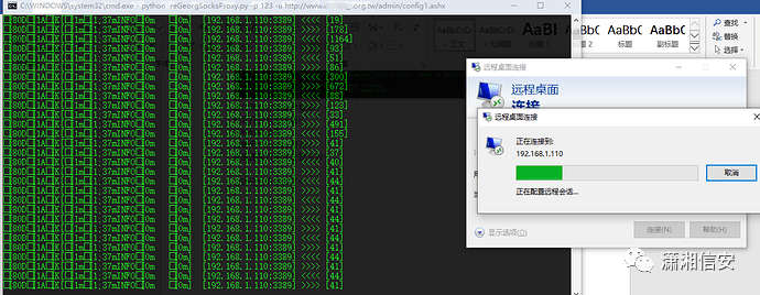然后打开远程连接,找到他的位置,右键用Proxifier打开,直接连接内网地址就可以,这边已经有回显了